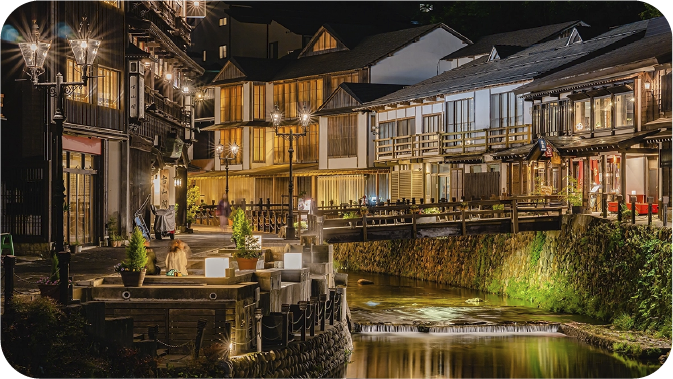 大正ロマン漂う銀山温泉や、本場の花笠、豊かな自然など、 外せない「王道」スポットを巡るコースです。このまちの多彩な魅力を満喫してみませんか?