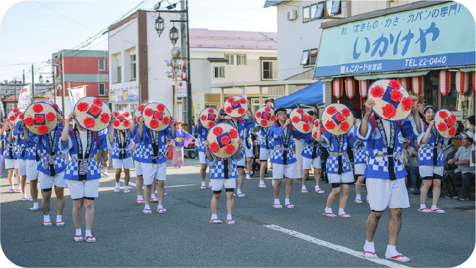 本場の花笠、豊かな自然など、