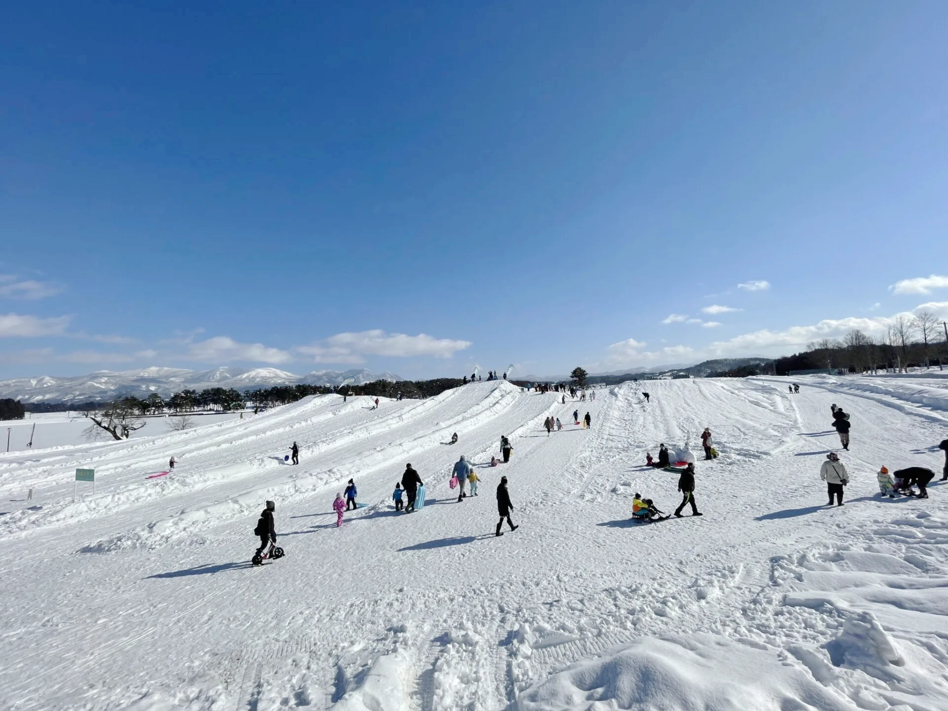 徳良湖スノーランドは、冬の尾花沢を気軽に楽しめる雪遊びスポットです。徳良湖畔の広々とした会場で、そり遊びなどの雪のアクティビティを家族みんなで楽しめます。見通しが良く、初めて雪に触れる方や小さなお子さまでも安心。白銀の景色と澄んだ空気に包まれながら、尾花沢の冬ならではの魅力を体感できます。